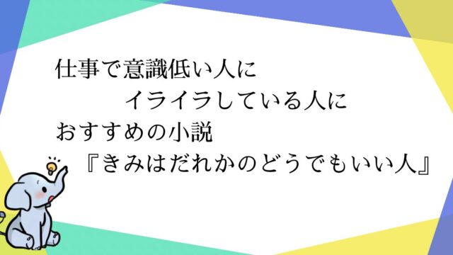 仕事で意識低い人にイライラしている人におすすめの小説『きみはだれかのどうでもいい人』