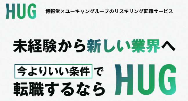 株式会社博報堂と株式会社ユーキャンが共同事業として立ち上げた株式会社HUGが運営するリスキリング転職サービスです。