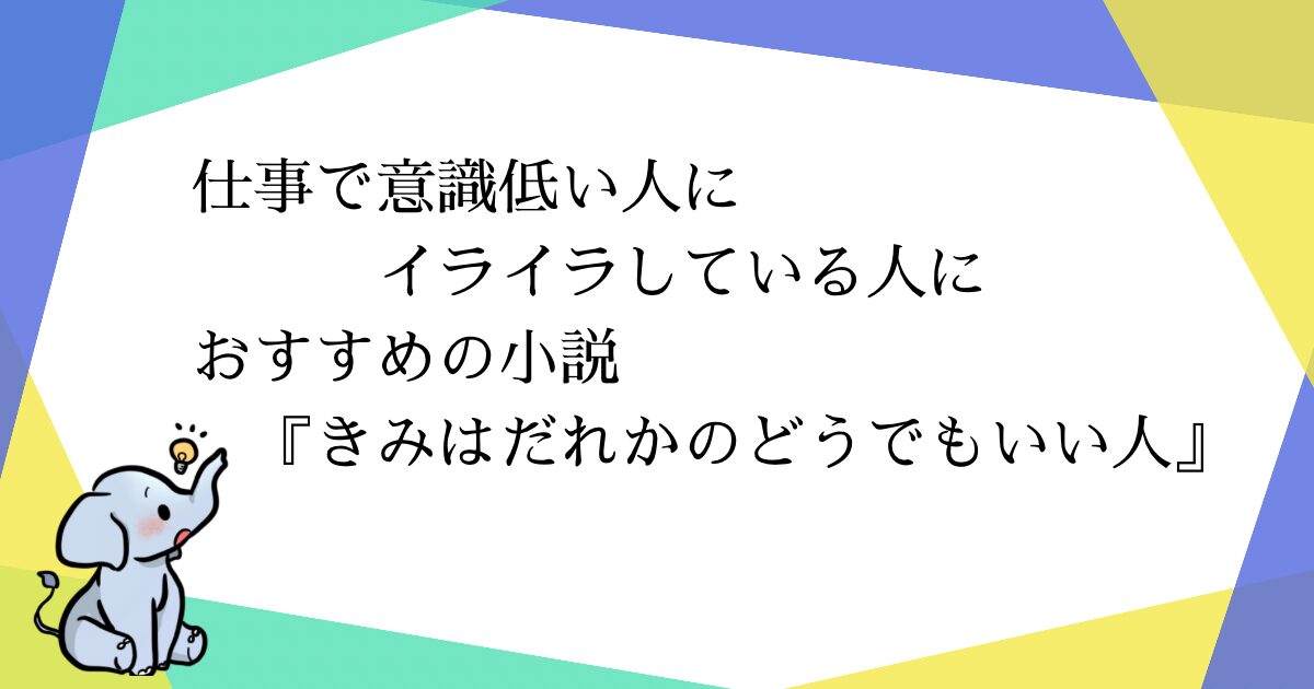 特に3つ目に紹介する小説『きみはだれかのどうでもいい人』は、今までビジネス書ばかり読んできた私にとって目から鱗な本だったよ!